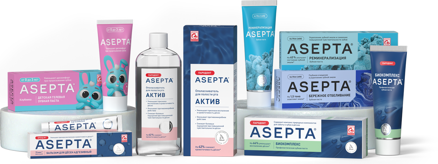 ASEPTA® создана, чтобы действительно решать проблемы с зубами и дёснами. За всеми обещаниями стоят доказательства и исследования эффективности продуктов